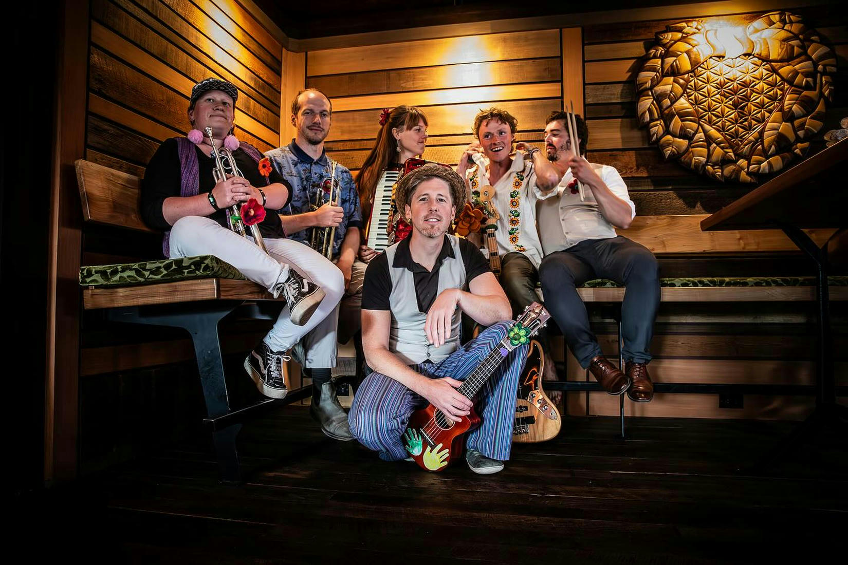 Caraluna (“beloved moon” in Gaelic/Latin, “moon face” in Spanish) is a multilingual indie-folk/world band led by singer-songwriter Jesse Edward Thom. Blending Balkan-inspired trumpets, accordion, and pulsing rhythms with poetic lyricism, Caraluna’s shows move effortlessly from intimate, heart-opening moments to driving, high-energy grooves that turn rooms into dance floors. Rooted in travel, nature, and a spirit of sacred play, Caraluna invites audiences into a celebration that feels both timeless and alive.